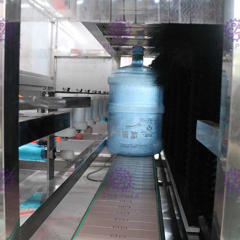 Das Ganze abfüllende Linie des 5-Gallonen-Wassers umfasst automatischen Entkröner, rotierende externe Waschmaschine, L Art Waschmaschine/Füller/Mützenmacher, erhitzen schrumpfend Maschine, Kontrollbeleuchtung, Tintenstrahlcodedrucker.